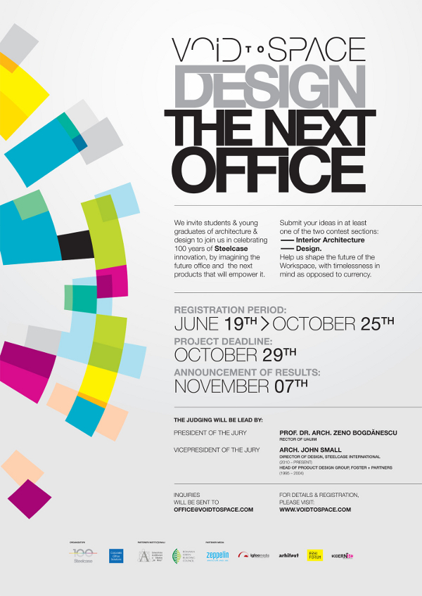 Cu ocazia aniversarii centenarului Steelcase, lider mondial in mobilier de birou, subsidiara din Romania, impreuna cu partenerul local Corporate Office Solutions (COS), lanseaza concursul national de arhitectura de interior si design „Void to Space: Design the Next Office”.