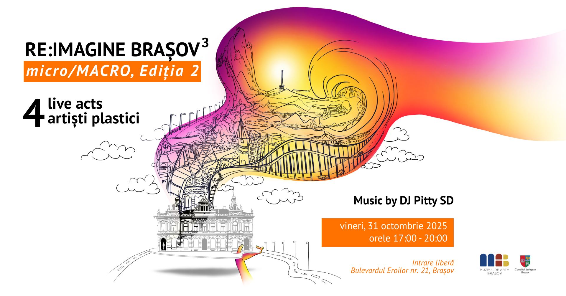 Muzeul de Artă Brașov vă invită vineri, 31 octombrie 2025, între orele 17:00 și 20:00, la un nou eveniment al proiectului „Re:Imagine Brașov – micro/MACRO”.