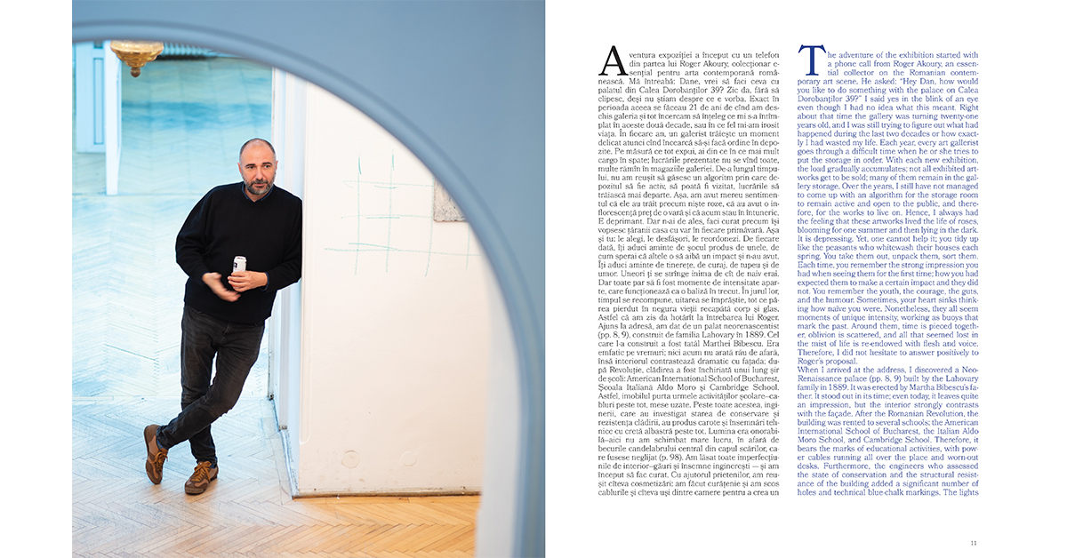 Cartea de față are un caracter personal accentuat. Este, în fapt, povestea a 23 de ani petrecuți cu artiștii și arta lor. În toți acești ani, ca galerist și curator, am încercat să înțeleg ce fac acești minunați și exasperanți oameni. Ce veți parcurge mai departe este o schemă a acestui traseu. Volumul începe cu o expoziție pe care am organizat-o în palatul Lahovary din Calea Dorobanților nr. 39 și care a durat mai bine de un an, din 2023 până în 2024. În acest spațiu generos am putut să developez momentele importante din periplul personal de înțelegere. Pe durata expoziției, în acel an, am ținut zeci de tururi ghidate, iar rezultatul final îl puteți citi aici. A doua parte a cărții adună textele scrise de către mine de-a lungul a mai bine de două decade. Propunerea de a uni cele două situații, – expoziția și textele – , a apărut în urma unei discuții cu Geanina și Tudor Grecu. Ei mi-au sugerat că, probabil am tot amânat publicarea textelor scrise despre artă, în așteptarea momentului hotărâtor. Care, spuneau ei, a apărut acum, cu ocazia expoziției Dan Popescu. Le mulțumesc pentru tot și sunt plin de gratitudine față de KPMG Romania, care a avut deschiderea incredibilă de a susține publicarea acestei cărți