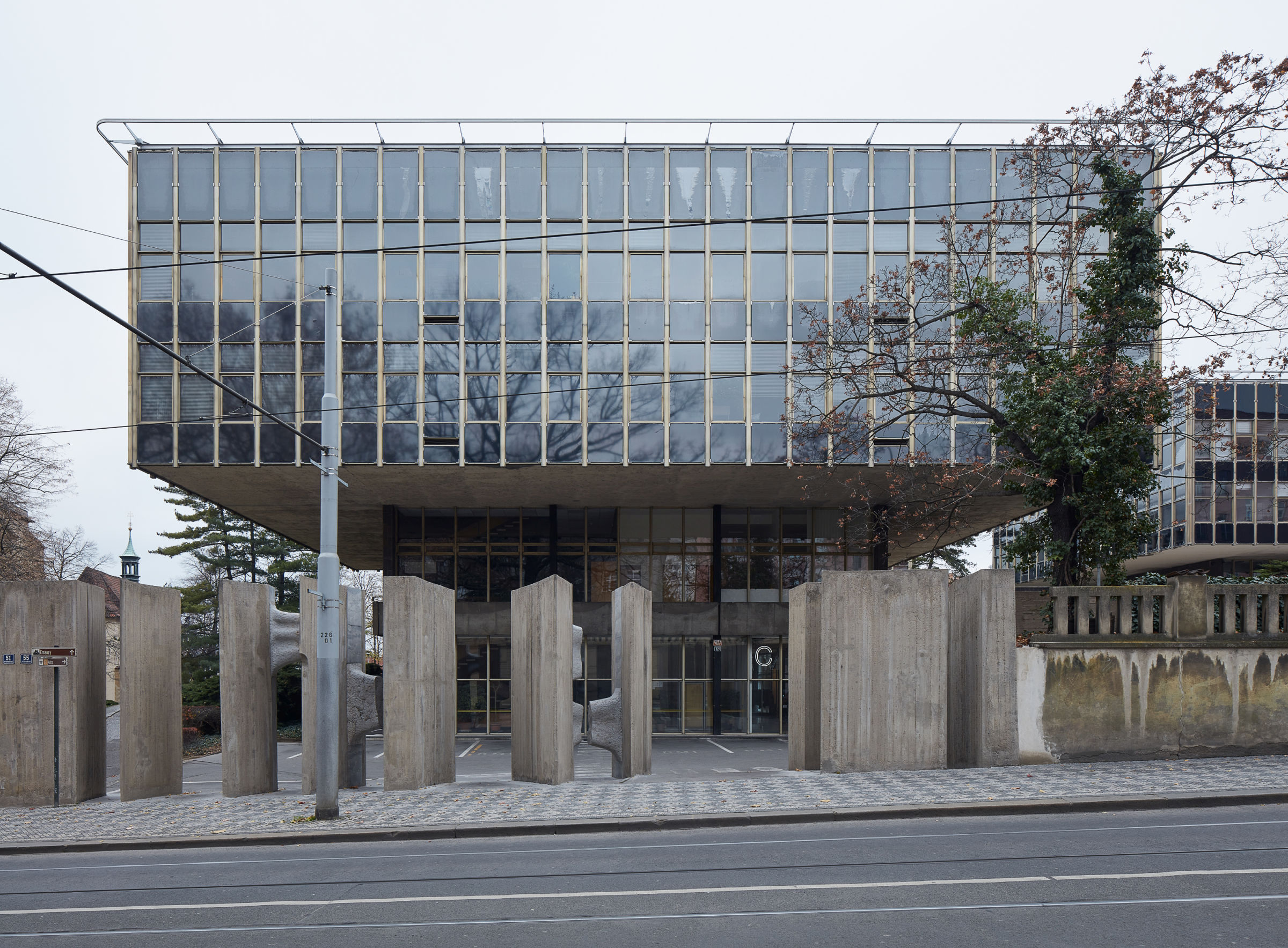Štěpán Bärtl: Clădirea – proiectată la sfârșitul anilor ’60, dar realizată abia în anii ’70 – a fost menită să adăpostească un centru pentru institutele socialiste de planificare – arhitectură, planificare urbană, infrastructură, … O adevărată expresie a recentralizării și controlului strict după 1968. Zona, parte dintre vechile domenii ale mănăstirii Emaus, a rămas în proprietatea orașului de-a lungul anilor și a fost întotdeauna legată, sub diverse forme, de planificare.