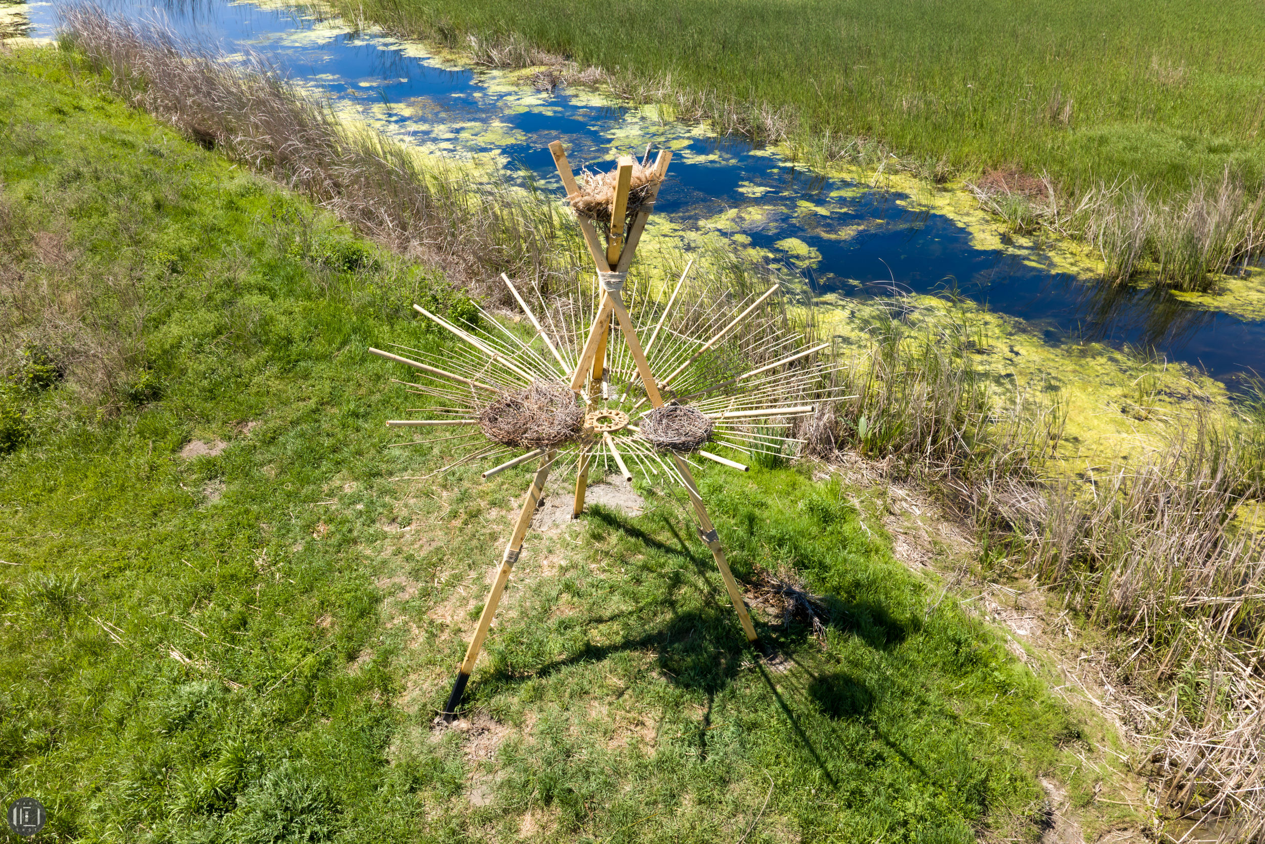 Rezultatul: trei intervenții care aduc în dialog patrimoniul local, natura și arta contemporană, transformând traseul de ecoturism Delta lui Ivan într-o galerie în aer liber. În satul Mila 23, la Șontea și la Războinița, vizitatorii pot descoperi instalațiile Dragonfly, Plaur și Păsărar, fiecare cu propria poveste și materialitate, de la stuf și bambus la lemn și funii naturale, lucrate prin tehnici tradiționale reinterpretate contemporan.