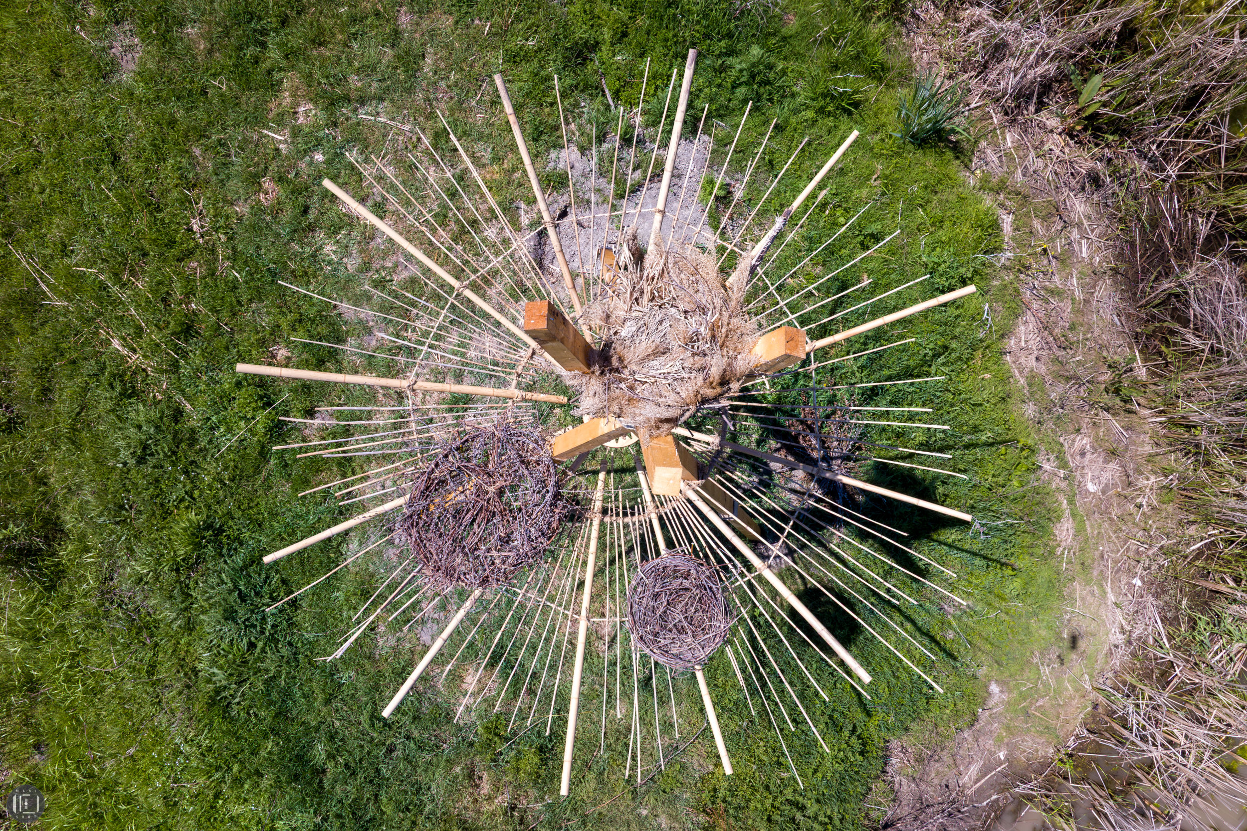 Prin utilizarea tehnicilor tradiționale de tratare a lemnului și a metodelor locale de legare și înnodare, artiștii reactivează cunoașteri străvechi într-un context contemporan. Cu o înălțime de 4 metri și o suprafață de aproximativ 3 mp, PASĂRAR devine o formă de dialog între artă și mediu, între protecție, memorie și continuitate.