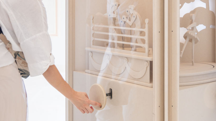 The Wave: An interactive installation simulates the formation of waves from water and wind, against the backdrop of the hazards of the sea, where science and faith in the gods meet in front of untamed nature.