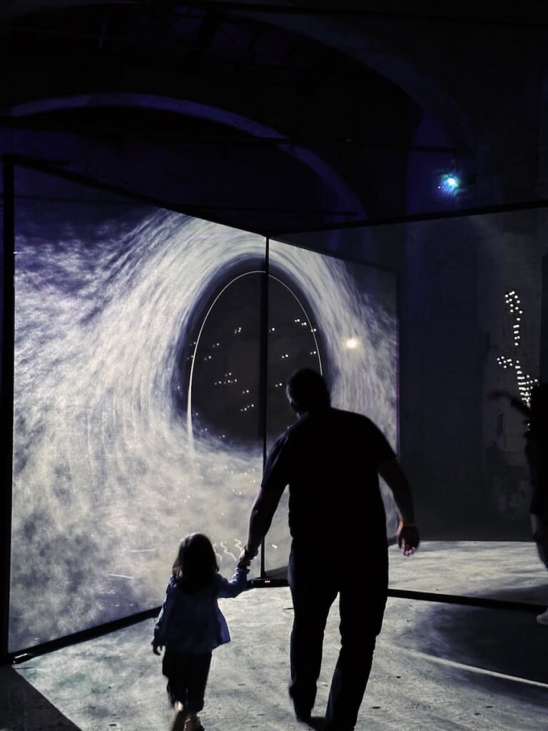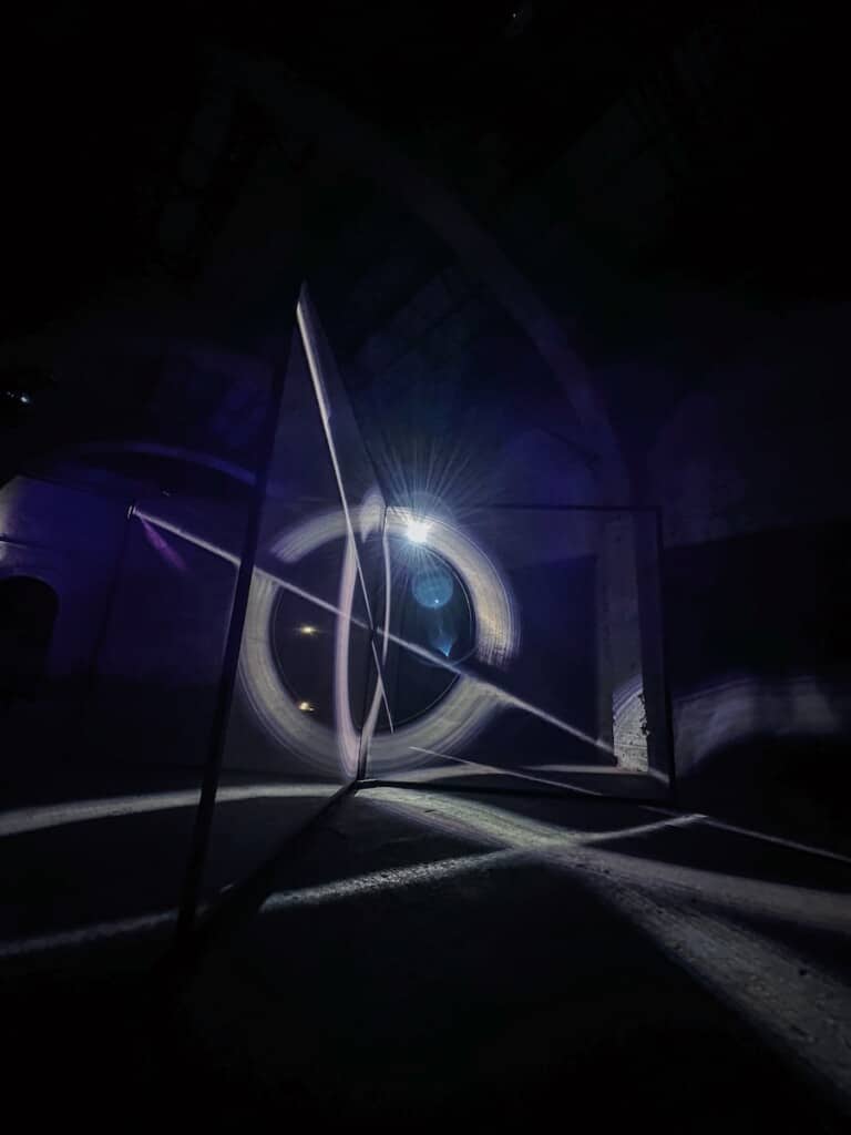 Instalația, în premieră în România după prezența la Bright Festival Florența 2023 si Bright Festival Bruxelles 2025, propune o experiență imersivă inspirată de universul fascinant al găurilor negre și de felul în care acestea influențează lumina și spațiul. Construită din două ecrane holografice și animată de proiecții sincronizate, lucrarea creează senzația de adâncime și iluzia unui obiect plutitor, privitorii având experiența unui efect care ar putea fi numit imagine 2.5D. Instalația atrage vizitatorii într-un spațiu vizual în continuă schimbare, într-un loc în care ceea ce vezi nu rămâne niciodată la fel și unde percepția este mereu provocată.