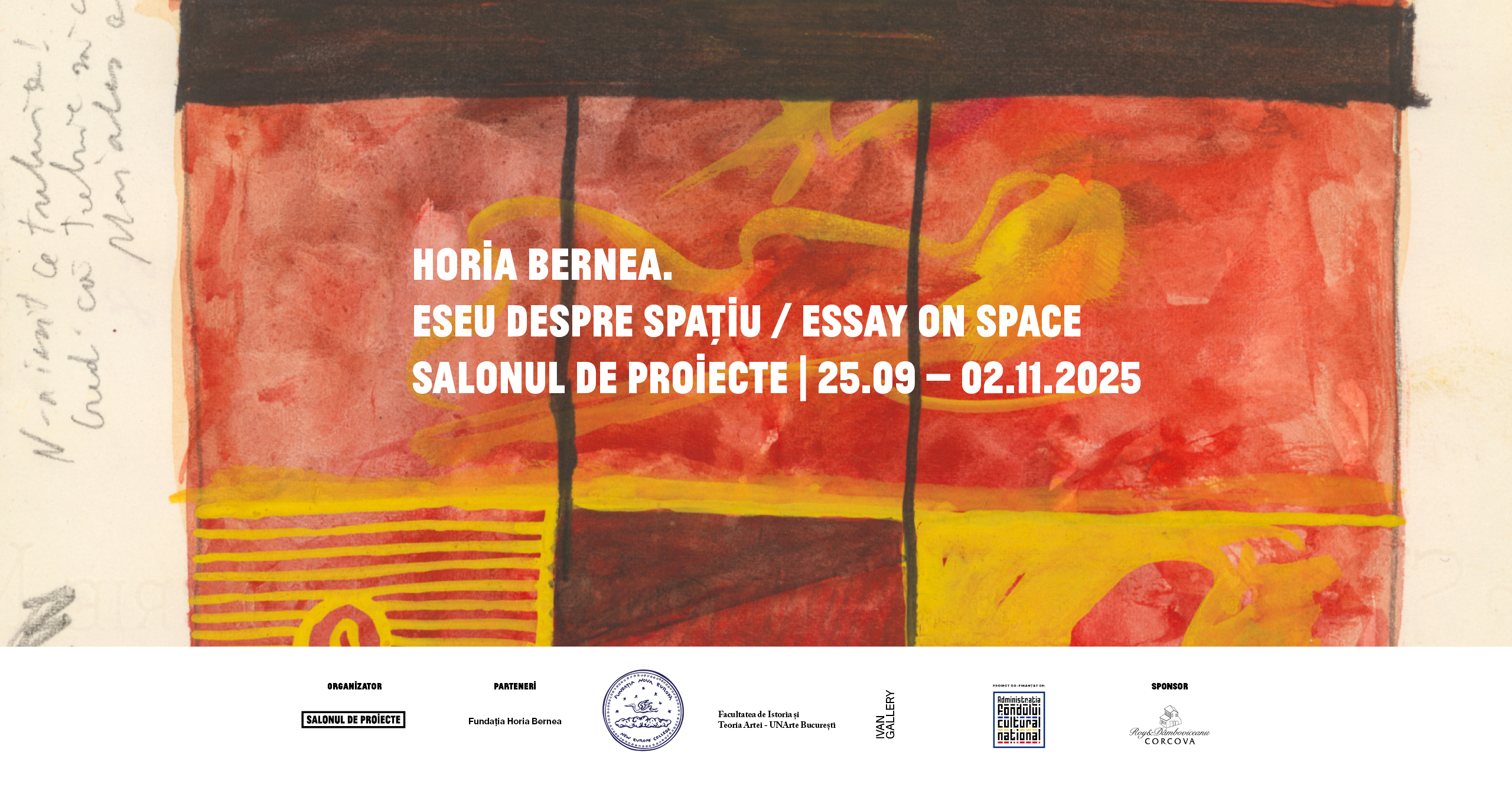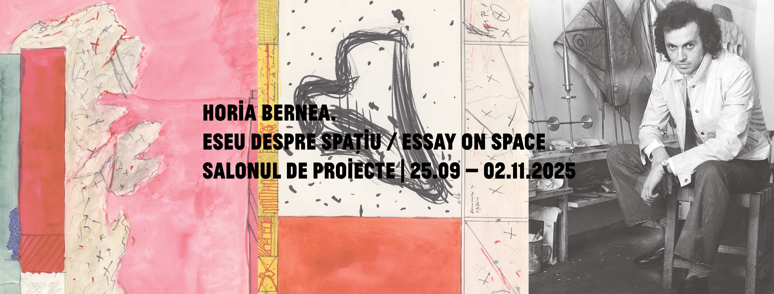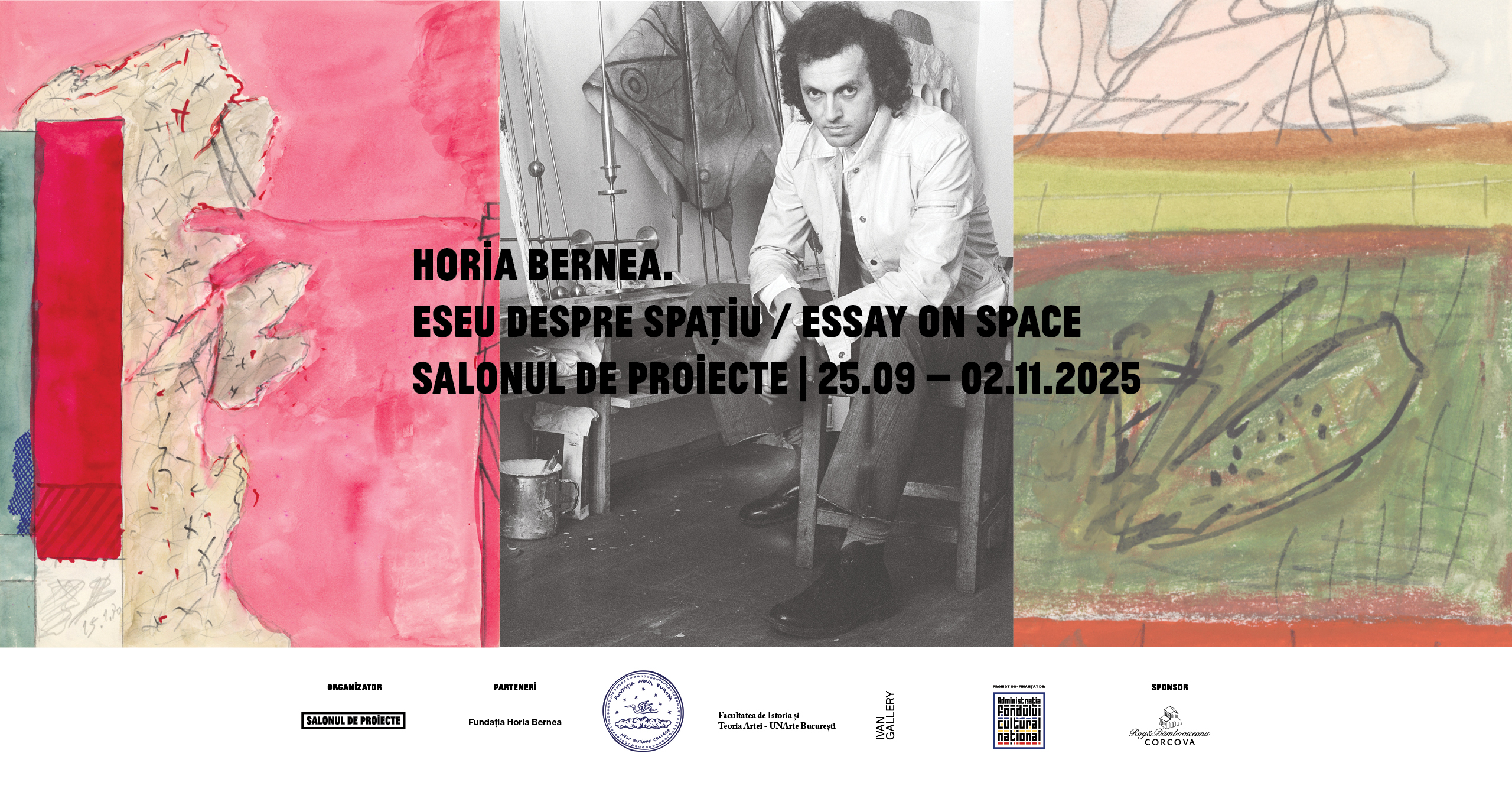 Expoziția Eseu despre spațiu este o primă manifestare publică inițiată în colaborare cu nou înființata Fundație Horia Bernea, a cărei misiune este de a cerceta și pune în valoare moștenirea artistului. Expoziția aduce în atenția publicului o serie de lucrări, schițe, documente care aparțin etapei timpurii de lucru, fundamentală pentru configurarea unor direcții conceptuale și soluții formale ce vor marca ulterior întreaga sa operă. Experimentele realizate de Horia Bernea în intervalul 1968-1973 sunt de o uluitoare modernitate în ceea ce privește investigarea mediului picturii: de la experimente cu materia picturală – care fac ca în anumite situații el să utilizeze diverse tipuri de pigmenți industriali – până la explorările sale insistente care împing pictura către registrul obiectual. Această perioadă se definește, de asemenea, prin articularea reflecțiilor sale asupra actului artistic în texte cu valoare programatică, prin care arta este integrată într-un câmp amplu de preocupări, având ca miză simultană extinderea cunoașterii și adâncirea misterului. Construcția unui sistem de „entități”, cu morfologii și nume inventate – Brarb, Mucarfă, Verg, Stroaeuge –, este emblematică pentru modul în care artistul îmbină referințe la universul subatomic, la realitatea tangibilă și la planul spiritual. În același timp, tranziția de la schiță și desen la pictură ori obiect se conturează pregnant în cadrul acestei expoziții, care caută să capteze un proces febril de lucru, unde rigoarea se împletește cu spontaneitatea, evocând frenezia improvizatoare a jazz-ului, o pasiune de lungă durată a lui Horia Bernea. Unul dintre cele mai timpurii ateliere, cel din strada Șelari, este prezent în expoziție atât în sens documentar și reconstitutiv, cât și în sensul revelării practicii conceptuale care a marcat creația artistului.