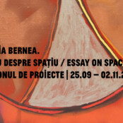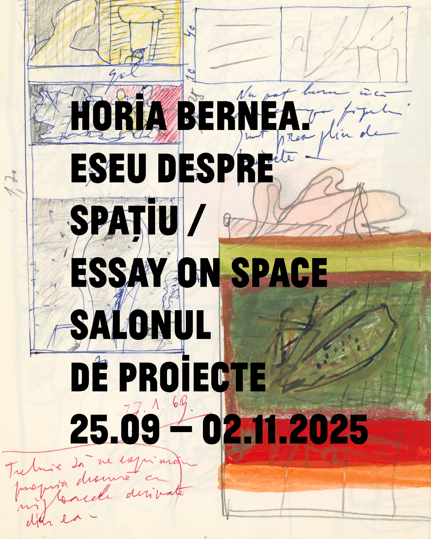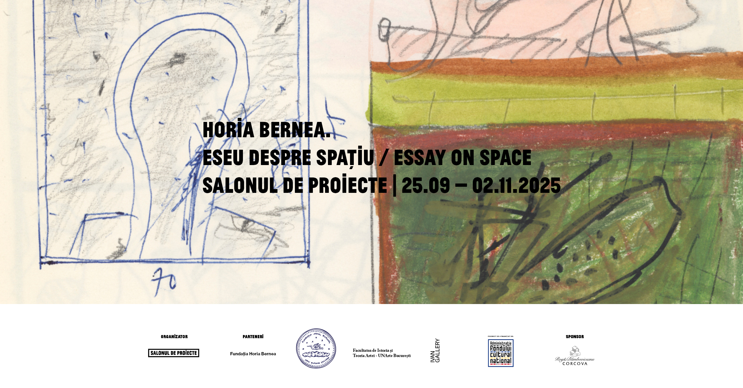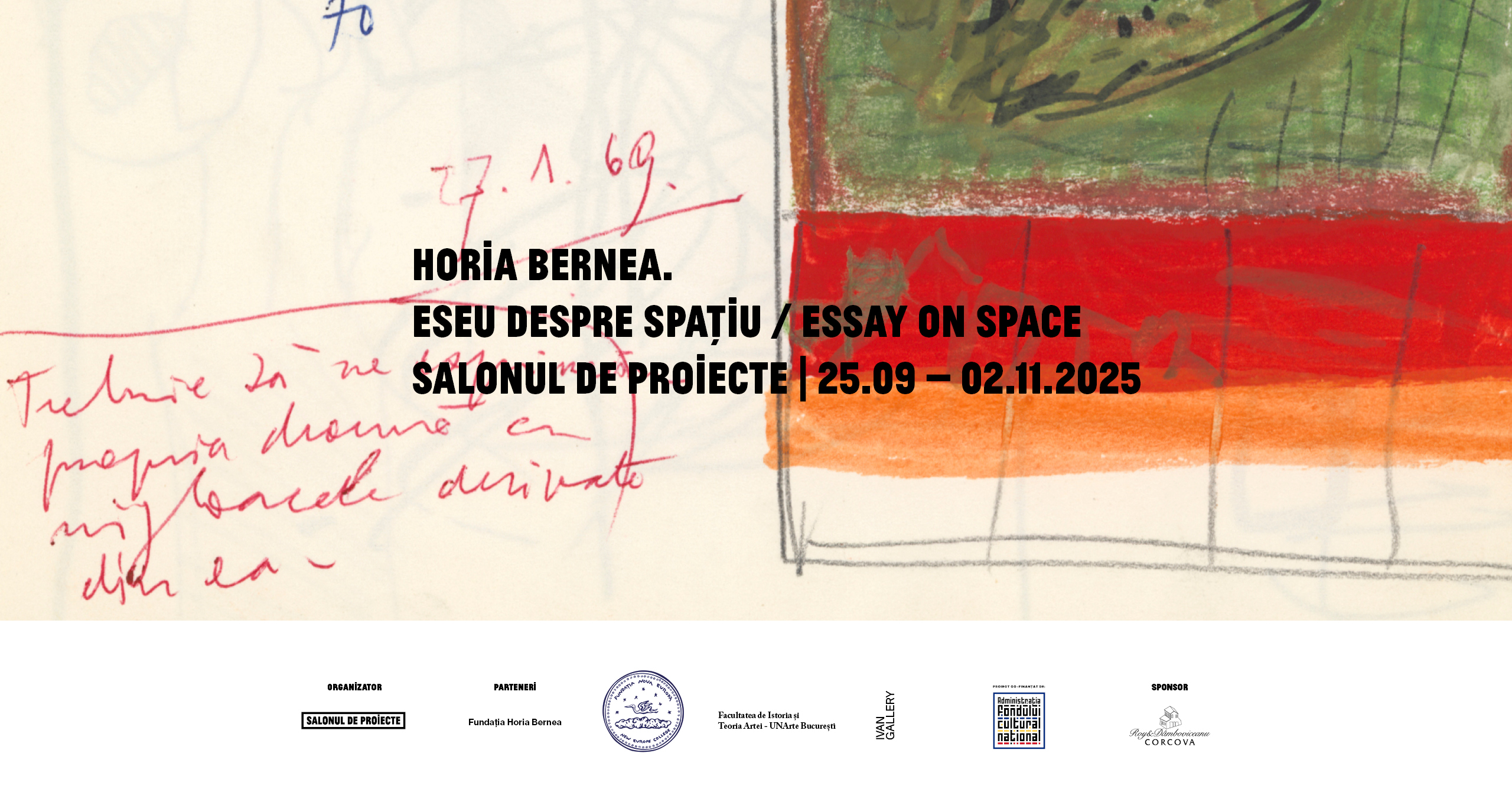 Expoziția Eseu despre spațiu este o primă manifestare publică inițiată în colaborare cu nou înființata Fundație Horia Bernea, a cărei misiune este de a cerceta și pune în valoare moștenirea artistului. Expoziția aduce în atenția publicului o serie de lucrări, schițe, documente care aparțin etapei timpurii de lucru, fundamentală pentru configurarea unor direcții conceptuale și soluții formale ce vor marca ulterior întreaga sa operă. Experimentele realizate de Horia Bernea în intervalul 1968-1973 sunt de o uluitoare modernitate în ceea ce privește investigarea mediului picturii: de la experimente cu materia picturală – care fac ca în anumite situații el să utilizeze diverse tipuri de pigmenți industriali – până la explorările sale insistente care împing pictura către registrul obiectual. Această perioadă se definește, de asemenea, prin articularea reflecțiilor sale asupra actului artistic în texte cu valoare programatică, prin care arta este integrată într-un câmp amplu de preocupări, având ca miză simultană extinderea cunoașterii și adâncirea misterului. Construcția unui sistem de „entități”, cu morfologii și nume inventate – Brarb, Mucarfă, Verg, Stroaeuge –, este emblematică pentru modul în care artistul îmbină referințe la universul subatomic, la realitatea tangibilă și la planul spiritual. În același timp, tranziția de la schiță și desen la pictură ori obiect se conturează pregnant în cadrul acestei expoziții, care caută să capteze un proces febril de lucru, unde rigoarea se împletește cu spontaneitatea, evocând frenezia improvizatoare a jazz-ului, o pasiune de lungă durată a lui Horia Bernea. Unul dintre cele mai timpurii ateliere, cel din strada Șelari, este prezent în expoziție atât în sens documentar și reconstitutiv, cât și în sensul revelării practicii conceptuale care a marcat creația artistului.