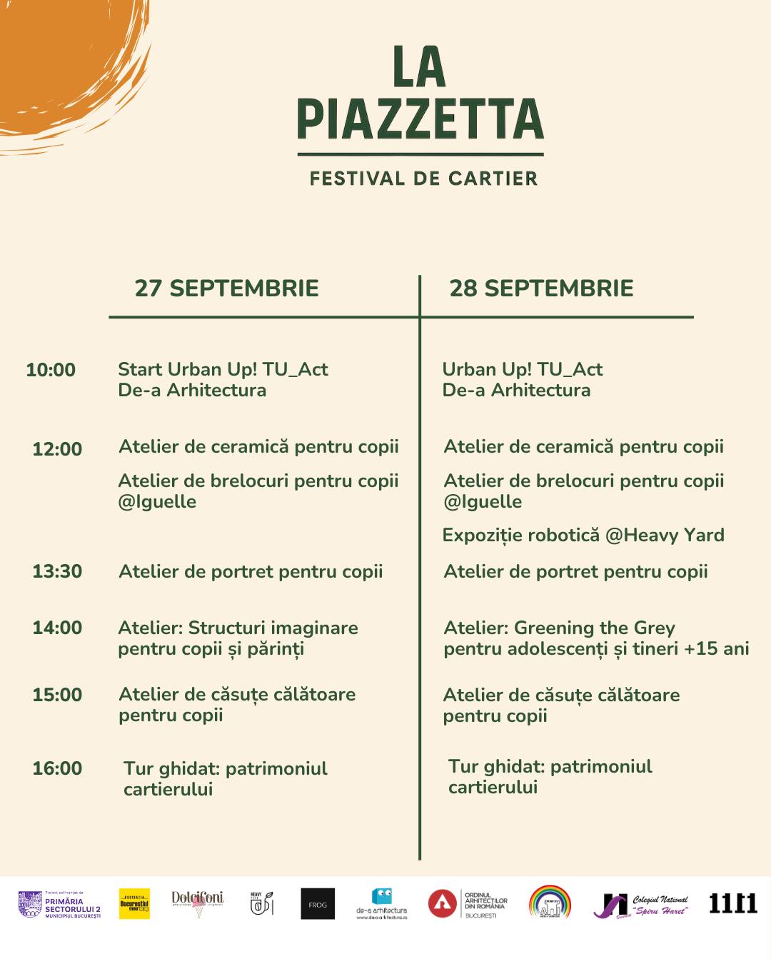 În Piața Italiană, publicul este invitat la ateliere de teatru, pictură și lucru manual (crearea de căsuțe din materiale reutilizabile), dar și la tururi ghidate de patrimoniu dedicate istoriei cartierului.