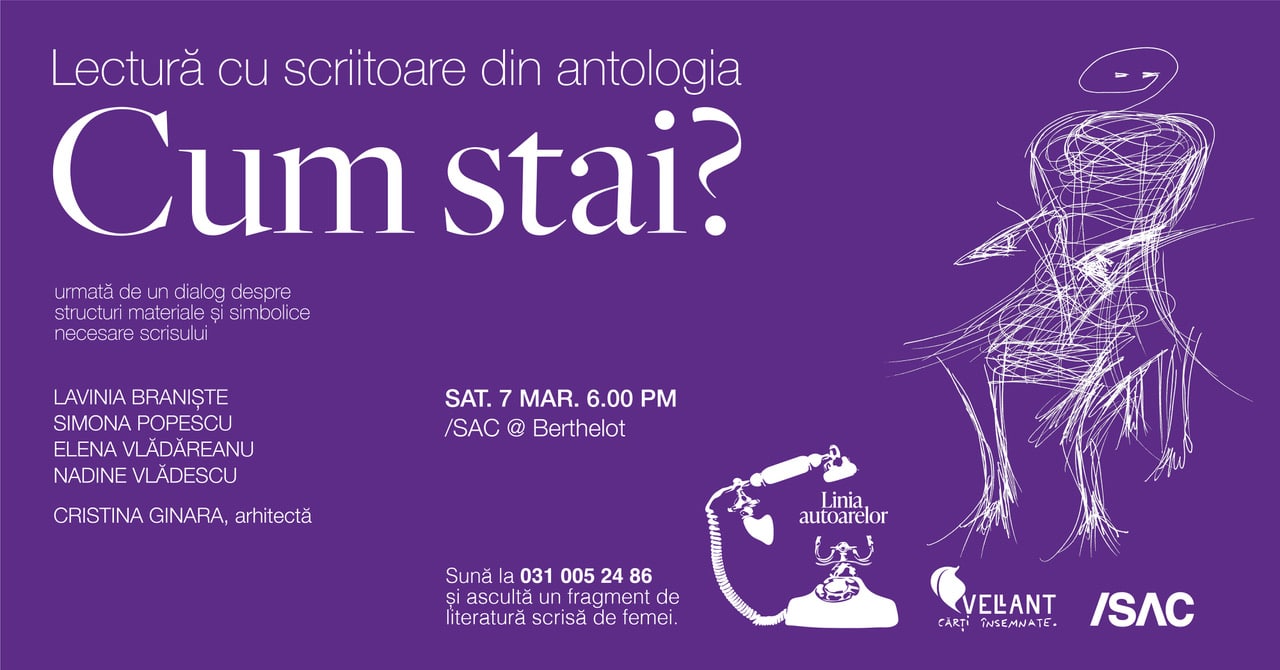 Lectură cu scriitoare din antologia Cum stai? urmată de un dialog despre structuri materiale și simbolice necesare scrisului