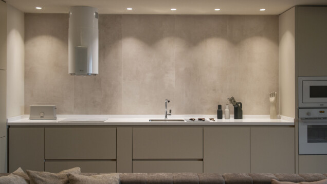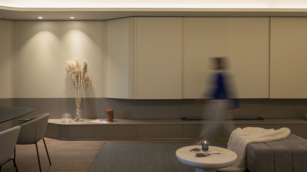 Am propus redefinirea limitelor apartamentului sub forma unui perimetru continuu și sinuos. Acest nou fundal joacă multiple roluri funcţionale şi este pus în valoare prin utilizarea mai multor tipuri de iluminat. Mai important, el leagă vizual diferite spaţii şi zone ale locuirii, iar formele curbe definesc zone cu un caracter diferit, începând cu holul de acces, prin bucătărie dinning, lounge şi terminând cu dormitorul.