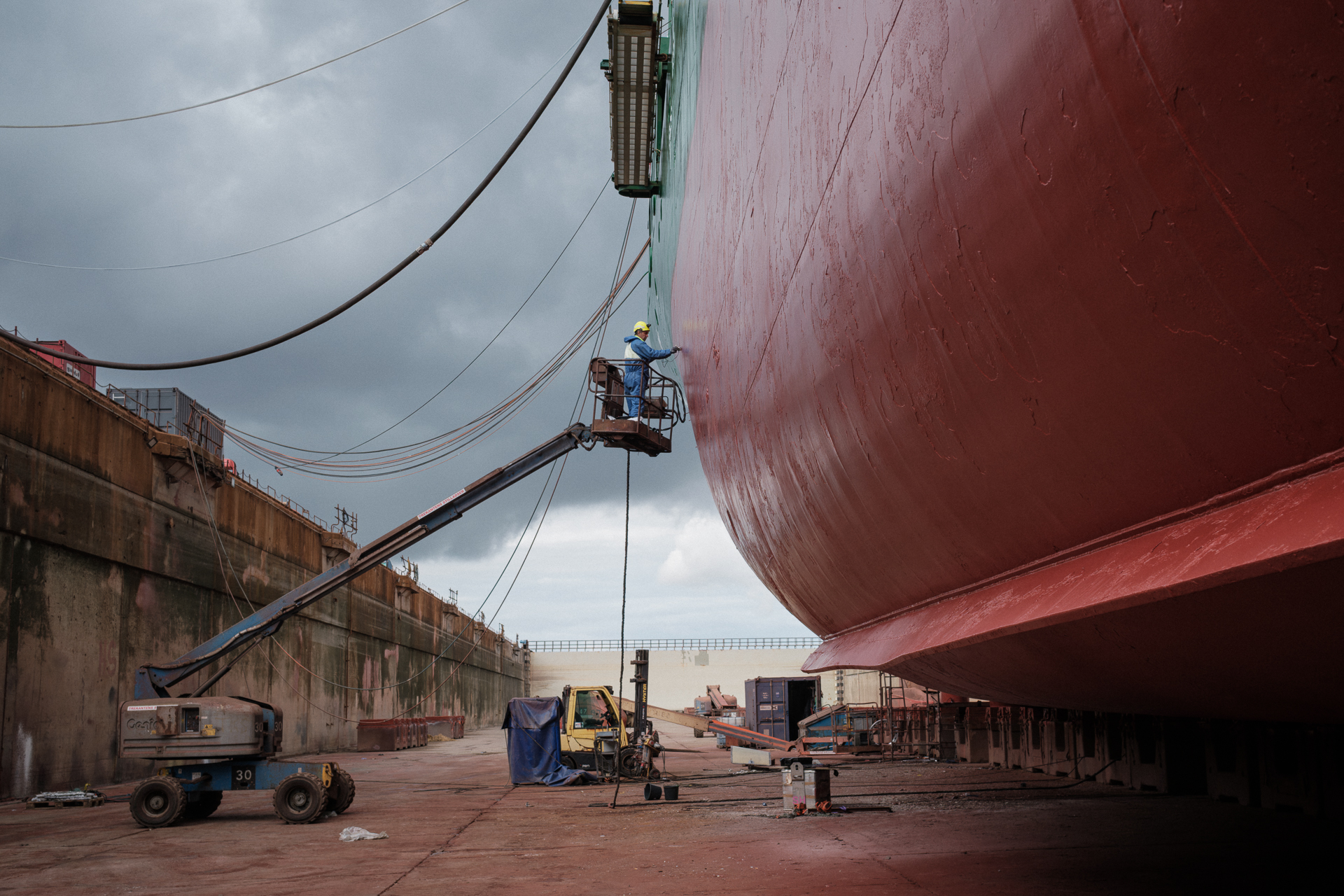 007 Dumitru Apostu, 57 de ani, folosește un aparat cu ultrasunete ca să măsoare eroziunea unui vapor în portul Odense, Danemarca. Dumitru s-a reconvertit profesional la 50 de ani și a devenit inspector de măsurători navale în Danemarca, după ce în România a lucrat la spații verzi. 8 august 2022