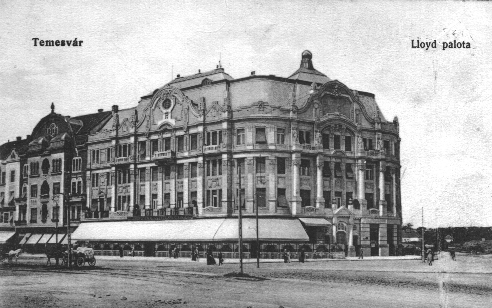 Palatul a fost construit în perioada 1910-1912 și a fost proiectat în stil Seccesion de arhitectul maghiar Lipót Baumhorn, autor al mai multe edificii prestigioase din Timișoara. Clădirea a fost inițial sediul Societății Lloyd, o companie de asigurări și transport maritim, dar și sediul Bursei Agricole, la primul etaj. La etajele al doilea și al treilea erau apartamente private. La parterul clădirii a existat o cafenea numită Café Lloyd şi un restaurant, loc de întâlnire al elitelor și boemei timișorene.